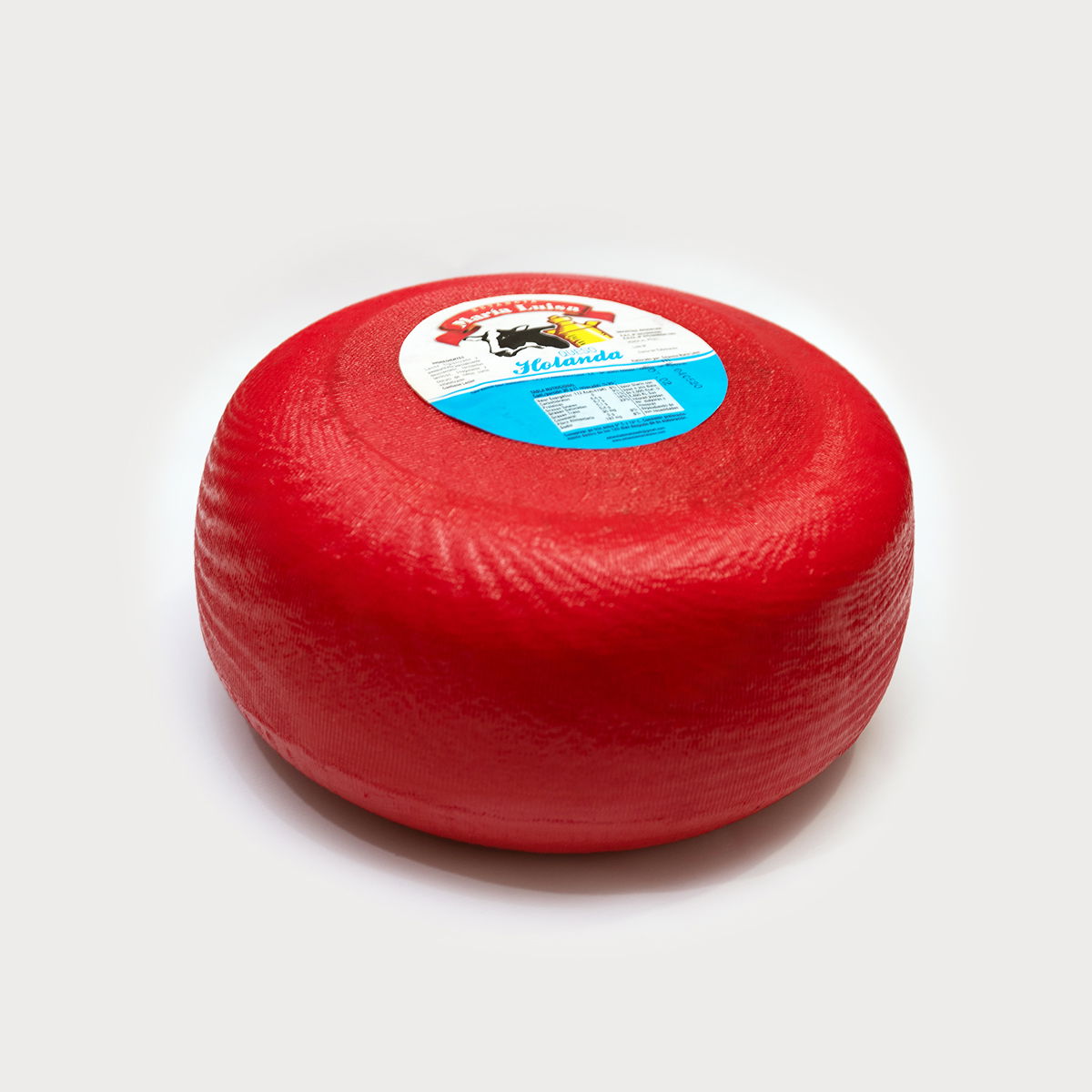 Queso tipo Holanda de pasta semidura, sabor suave a levemente intenso y excelente consistencia para cortar en fetas o rallar.