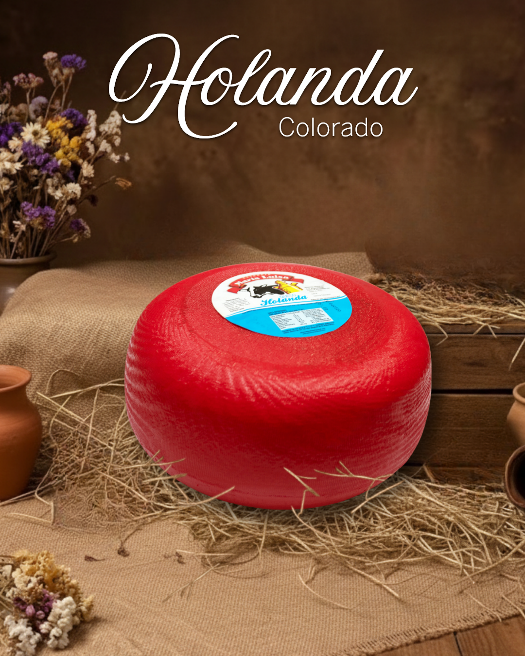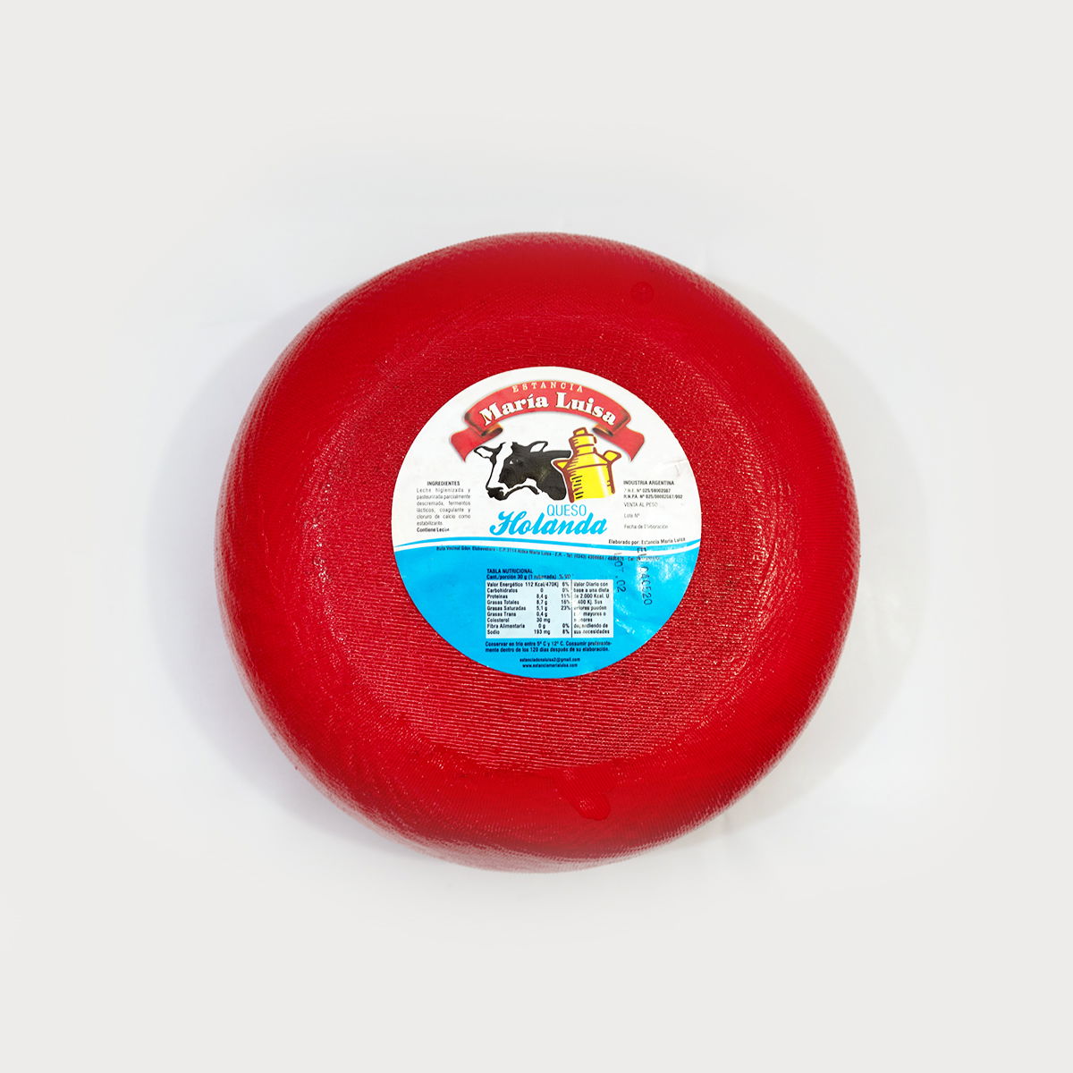 Queso tipo Holanda de pasta semidura, sabor suave a levemente intenso y excelente consistencia para cortar en fetas o rallar.